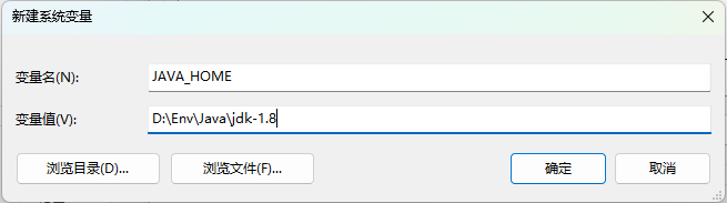- 新建系统变量JAVA_HOME,路径为jdk8路径