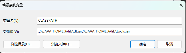 - 新建系统变量CLASSPATH,指定类搜索路径